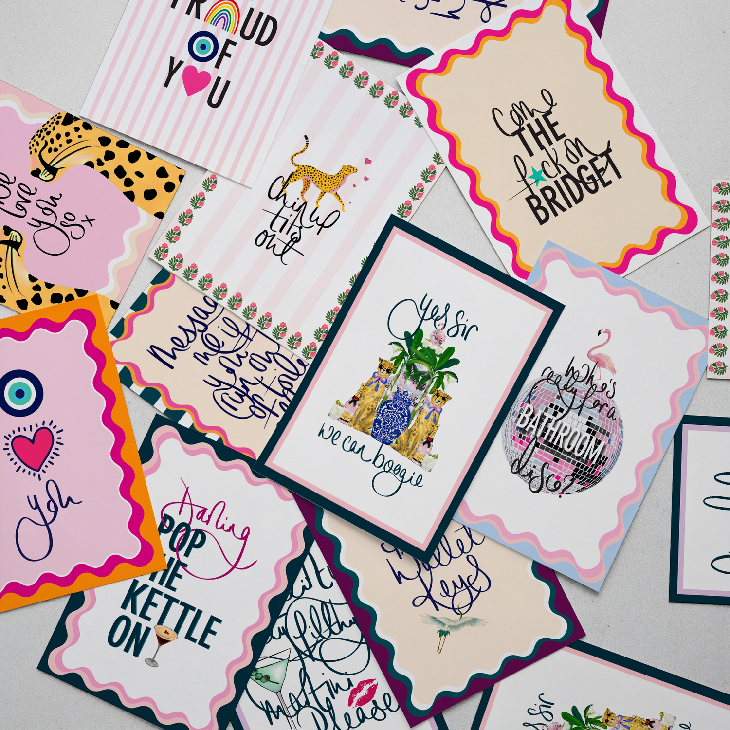 Add a bit of fun to special occasions and let people know you're thinking of them with our unique, hand-drawn, boutique printed greetings cards.